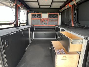 We provide vehicle storage solutions designed to maximize space, organization, and accessibility for overland and adventure-focused builds. From drawer systems and bed storage to modular interior solutions, our setups are built to keep gear secure and easy to reach on the road or trail. Each solution is selected or configured with durability and real-world use in mind, helping you stay organized without sacrificing functionality or cargo capacity.